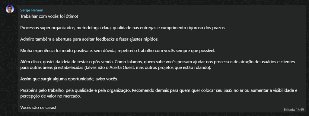 Nosso foco é em empresas SaaS e soluções AI-first. Mas podemos avaliar caso a caso para